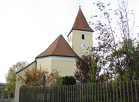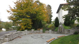 Denkmalanlage mit in eine Mauer integrierten Tafeln unterhalb der Kirche für die Orte Pullenreuth,