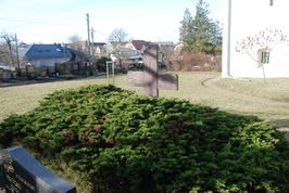 Reinersdorf (2. Weltkrieg), Gemeinde Ebersbach, Landkreis Meißen, SachsenPLZ 01561 Auf dem Kirchhof steht ein braunes, schon verwahrlostes und zugewuchertes Holzkreuz für Soldaten des 2. Weltkriegs (nur zwei Namen lesbar)