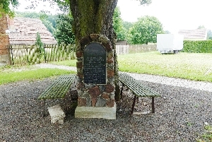Das Denkmal besteht aus einer auf einem Sandsteinsockel ruhenden Stele, die aus Feldsteinen gemauert ist