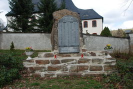 Vor dem Friedhof steht das Denkmal für die im 1. Weltkrieg Gefallenen des Ortes. Auf einem Sockel steht ein ca. 2 m hoher Natur-Gneisstein, an welchem eine helle Namensplatte angebracht wurde. Das Denkmal wurde 2016 nicht zuletzt aufgrund einer großzügigen privaten Spende und der Initiative der Kirchgemeinde renoviert.