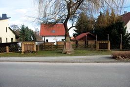 Gegenüber dem Friedhof steht die Anlage. Mittig das Denkmal aus hellem Stein für die Gefallenen des 1. Weltkriegs. Jeweils daneben stehen zwei in Klinker gefasste Namenstafeln für die Gefallenen des 2. Weltkriegs aus Lötzschen, Welxande, Stölpchen und Sacka