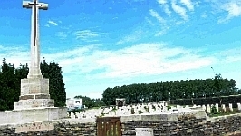 Sailly sur la Lys (Britische Kriegsgräberstätte Anzac), Departement Pas de Calais, Region Haut-de-France, FrankreichPLZ 62840 Britische Kriegsgräberstätte mit dem Grab eines unbekannten deutschen Soldaten