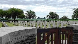 Sailly sur la Lys (Britische Kriegsgräberstätte), Departement Pas de Calais, Region Hauts-de-France, FrankreichPLZ 62840 Britische Kriegsgräberstätte mit einem deutschen Grab