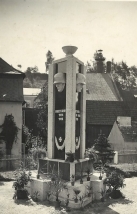 Das Denkmal wurde im August 1936 eingeweiht. Es zeigte an den vier Seiten jeweils einen Kriegerkopf mit Stahlhelm. Darunter eine Inschrift und unten ein Eisernes Kreuz unterrahmt von einem Lorbeerzweig. Das Denkmal wurde nach dem 2. Weltkrieg abgerissen, weil eine neue Straße gebaut wurde. Die Daten des 1. Weltkrieges wurden um die des 2. Weltkrieges ergänzt.