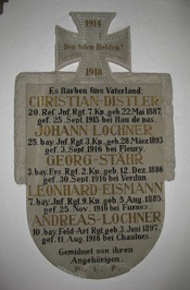 1914 Den toten Helden ! 1918 Es starben fürs Vaterland: (Namen) Gewidmet von ihren Angehörigen. R . I . P .