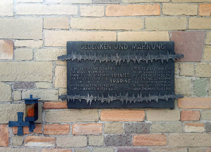 an der Außenwand der Aussegnungshalle im Friedhof Siegendorf.