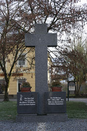 St. Valentin (Kirche), Bezirk Amstetten, Niederösterreich, ÖsterreichPLZ 4300 Bei der Kirche: Hochkreuz aus schwarzem Marmor, seitlich am Boden zwei Gedenktafeln.