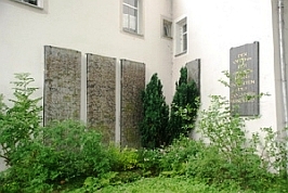 An der Wand eines Gebäudes des ehemaligen Rittergutes gegenüber des Paßklausenturms befinden sich drei große und eine kleinere Steintafeln mit Namen sowie eine Steintafel ausschließlich mit einer Widmung.