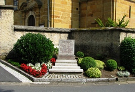 Das schlichte Steindenkmal steht vor der Kirche.