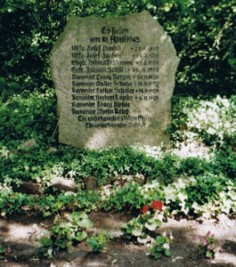 Für die Gefallenen der Kämpfe vom 16. April 1945 wurde ein Gedenkstein in Form eines Findlings aufgestellt. Zwei Gefallene konnten nicht identifiziert werden und sind als "unbekannter Unteroffizier", bzw. "unbekannter Soldat" auf dem Grab- und Gedenkstein vermerkt.