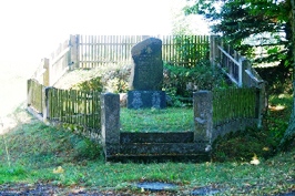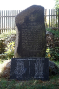 Naturstein am Ortseingang aus Richtung Oberhain neben der Dorfstraße (K 132), daran angelehnt eine Platte mit den Namen der Opfer des 2. Weltkriegs.