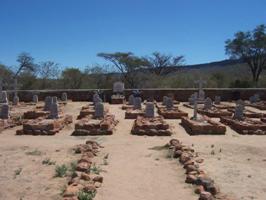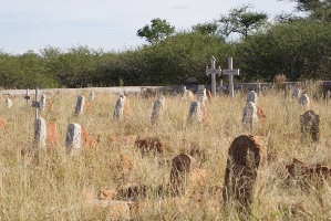 Waterberg, Otjozondjupa Region, Namibia (ehem. Deutsch-Südwestafrika)Einzelgräber auf dem Friedhof am Waterberg