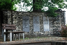 Vor dem Friedhof sind an einer gemauerten Feldsteinwand drei Widmungsplatten angebracht (ohne Namen)