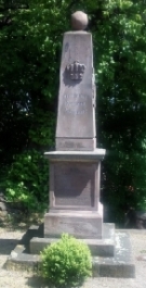 In unmittelbarer Nähe der Kirche, an der Südseite stehen 2 Denkmäler. Das ältere für die Gefallenen der Einigungskriege. Auf einem quaderförmigen Sockel sind Inschriften und Namen angebracht. Darüber eine spitz zulaufende viereckige Säule. Darauf zwei nach unten gerichtetete Schwerter, die von einem Lorbeerkranz bedeckt werden sowie eine Krone. Abgeschlossen wird das Denkmal von einer Kugel.