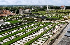 Kriegsgräberstätte sind die Grabsteine, sehr ungewöhnlich, flach im Boden eingelassen.