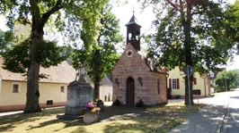 Das Denkmal steht vor der Ortskapelle auf einem Grünstreifen.