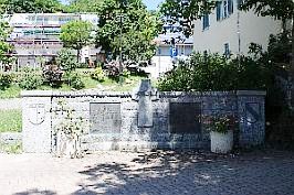 Bei der Kirche; gemauerte Wand mit eingelegten Gedenktafeln, links und recht je ein Wappen, in der Mitte Kreuz; zusätzlich Hinweise zu Soldaten von privaten Gedenksteinen