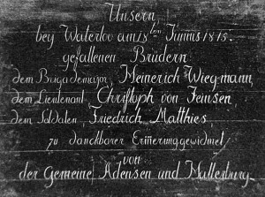Unsern bey Waterloo am 18ten Junius 1815 gefallenen Brüdern: (Namen) zu danckbarer