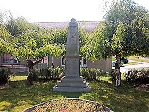 An der Hauptstraße am Ortausgang Richtrung Bernstadt steht ein Obelisk mit einer Widmungs– und zwei