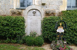 Gedenktafel für den 1. Weltkrieg an der Außenwand der Kirche. Gedenktafeln für beide Weltkriege gegenüber des Haupteingangs der Kirche.