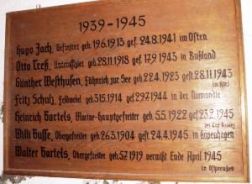 rechts davon eine mit Holz eingefasste Tafel mit Kreuz für die Gefallenen des 2. Weltkrieges.