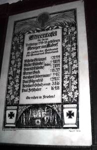 Gedenktafeln in der Kirche. Ehrenliste für die Gefallenen des 1. Weltkriegs