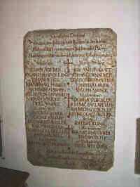 Zwei Gedenktafeln in der Ölberg-Kapelle (ehem. Beinhaus) auf dem Friedhof nördl. der Pfarrkirche St.Johannes Baptist.Dazu private Grabsteine