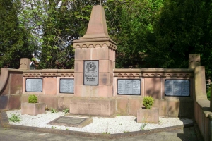 Denkmal für die Gefallenen des 1. Weltkriegs am alten Friedhof, Sandstein Block mit Widmungstafel und Seitenflügeln