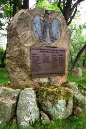 Findling mit angebrachten Namenstafeln auf dem Dolchauer Berg; Gedenktafeln in der Kirche