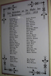 Gedenkblatt 1. Weltkrieg: Zum Gedenken an die Opfer des 1.Weltkrieges 1914-1918 Remkersleben: (Namen) Bergen: (Namen)
