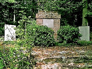 eine helle Gedenkplatte für die Opfer des 2. Weltkriegs. Die Gedenkstätte ist