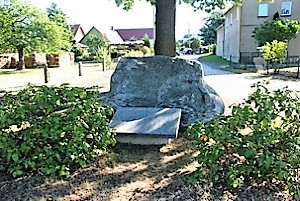 aus einem 3 x 2 m großen Findling mit Widmung und einer Namenplatte davor.