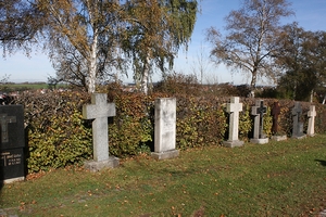 Im Friedhof; eine Reihe mit Kriegsgräbern