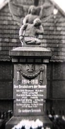 Soldaten stützt. Diese Figur wurde durch ein Eisernes Kreuz ersetzt. Auch die Namenstafel wurde