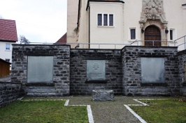 An der Mauer unterhalb der Kirche: drei Gedenktafeln