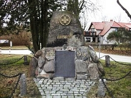 Findlingsdenkmal mit schwarzer Namenstafel Eisernes Kreuz auf dem Findling