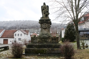 Bei der St. Georgskirche: Denkmal oben mit Adler, Inschriften und Namen an allen Seiten (höchstens 1/3 lesbar)