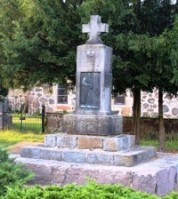 abgebrannt und 1744 wieder aufgebaut) steht eine Stele mit Kreuz auf vierstufigem Sockel. Vorne eine
