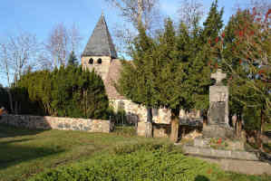Neben der Feldsteinkapelle von Cheine (spätgotischer Bau aus dem 13. Jahrhundert, Mitte des 18. Jhdts.