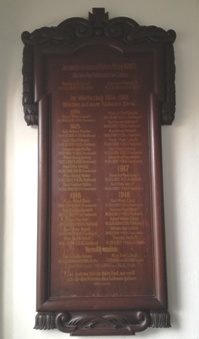 Im Weltkrieg 1914-1918 starben auf dem Felde der Ehre: (Namen)