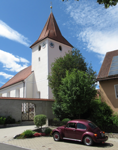 Das Denkmal für die Orte Deinschwang, Mettenhofen, Grafenbuch und Ballertshofen steht am Eingang des Kirchenfriedhofs. In die Mauer