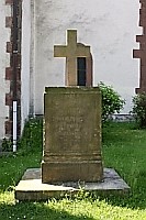 Im Parkfriedhof (ehem. ev. Friedhof, hinter der Kirche); ein Gedenkstein, oben mit Kreuz, vorne Inschrift; etwas