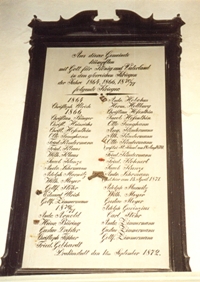 In der Kirche St. Nicolai in Drackenstedt angebrachte Tafel von 1872 für die Kriegsteilnehmer von 1864, 1866 und 1870/71.