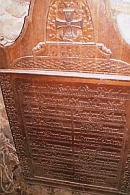Die Gedenktafel ist nicht in der Kirche aufgehängt, sondern steht stark verstaubt im engen Turmraum.