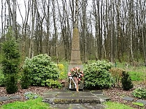 Ehrenhain bestehend aus einem Obelisk mit Eisernen Kreuz und Namenstafel zum 1. Weltkrieg.