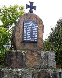 Denkmal für die Gefallenen des 1. Weltkriegs vor der Kirche, abgestufter Feldsteinsockel mit aufgesetztem Findling, gekrönt von einem EK. Gedenktafel in der Kirche. Ehrenliste für die Gefallenen des 1. Weltkriegs