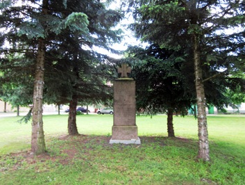 Göritz, Gemeinde Schönwölkau, Landkreis Nordsachsen, SachsenPLZ 04509 Steindenkmal mit krönendem Tatzenkreuz für den 1. Weltkrieg in der Grünanlage.