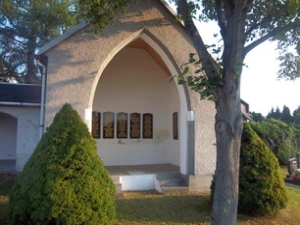 Auf dem Friedhof steht eine kleine Kapelle. In dieser befinden sich an der Wand insgesamt neun schwarze Steinplatten: eine Platte mit Widmung Feuerwehr, zwei Platten 1. Weltkrieg, fünf Platten 2. Weltkrieg, eine Platte Opfer des Stalinismus )