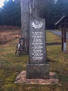 An der Dorfstraße steht eine kleine Stele aus hellem Granit.
