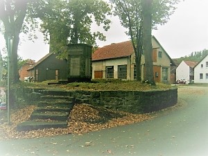 In der Dorfmitte auf einer kleinen Anhöhe mit drei Bäumen, erreichbar über sechs